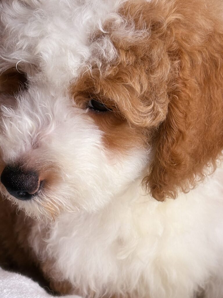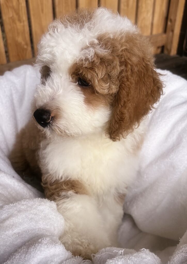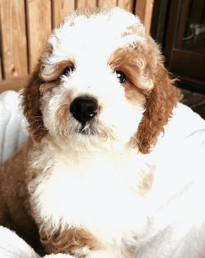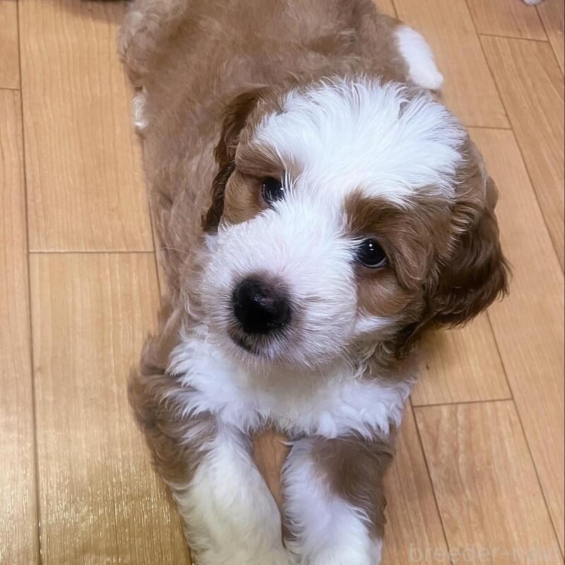 子犬情報 犬種バーニードゥードル:バーニーズ×スタンダードプードル毛色タン&ホワイト(茶白)性別男の子月齢2ヶ月(2025年07月17日生)体重3kg (2025年09月11日時点)将来予想体重:16kg-20kg体高:30cm-40cm性格性格も穏やかで優しい子です。ちょっぴり甘えん坊さん。血統書 なし