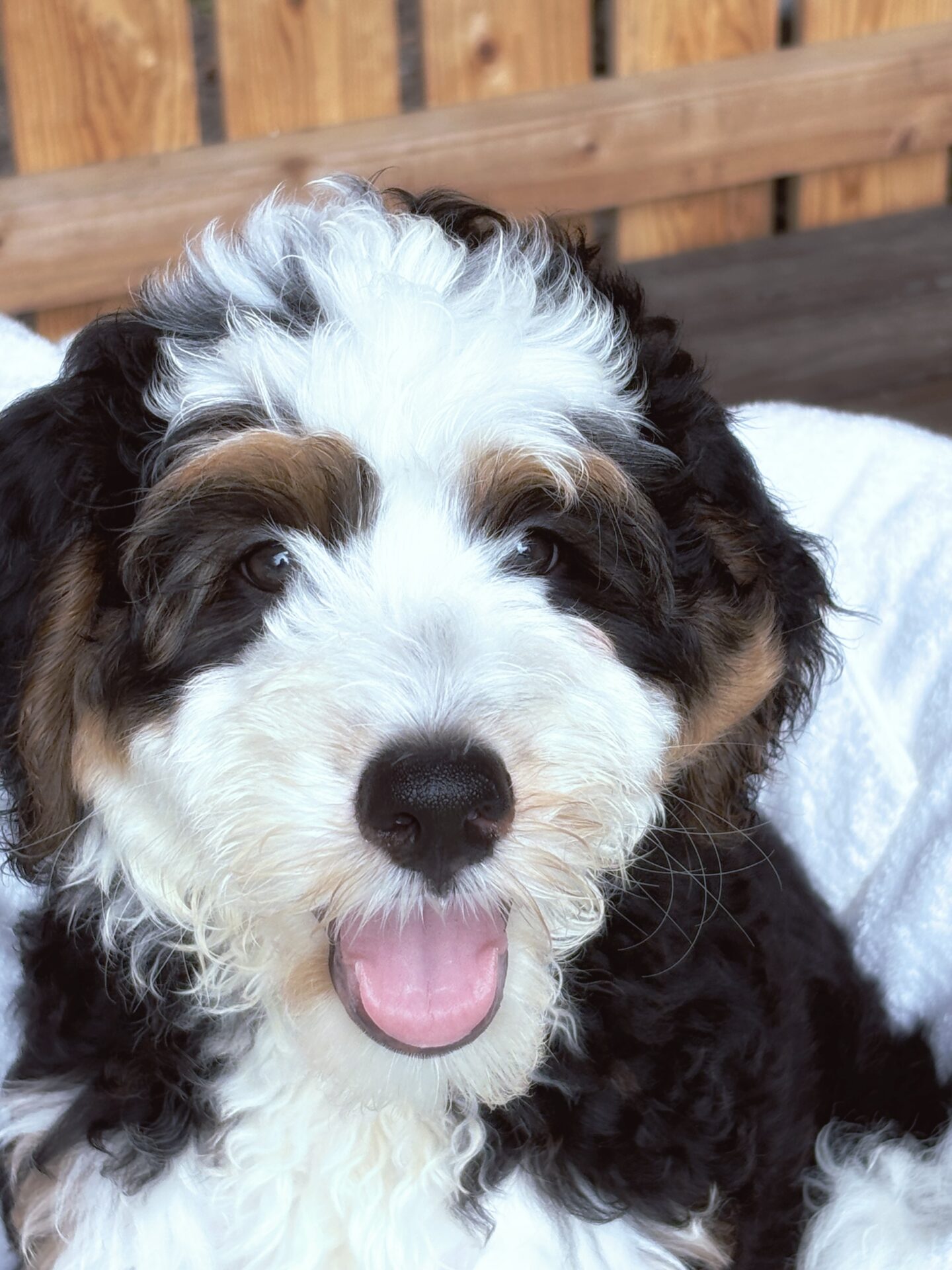 ふわふわの柔らかい毛並みが魅力で、穏やかで、優しい性格の男の子です。見た目はバーニーズマウンテンドッグに似ていて、とても愛らしい存在です。